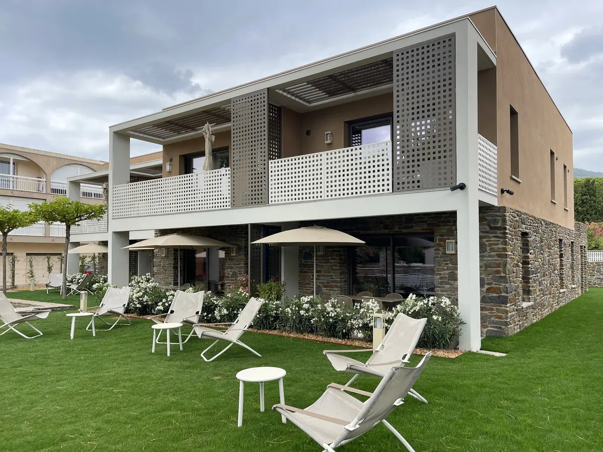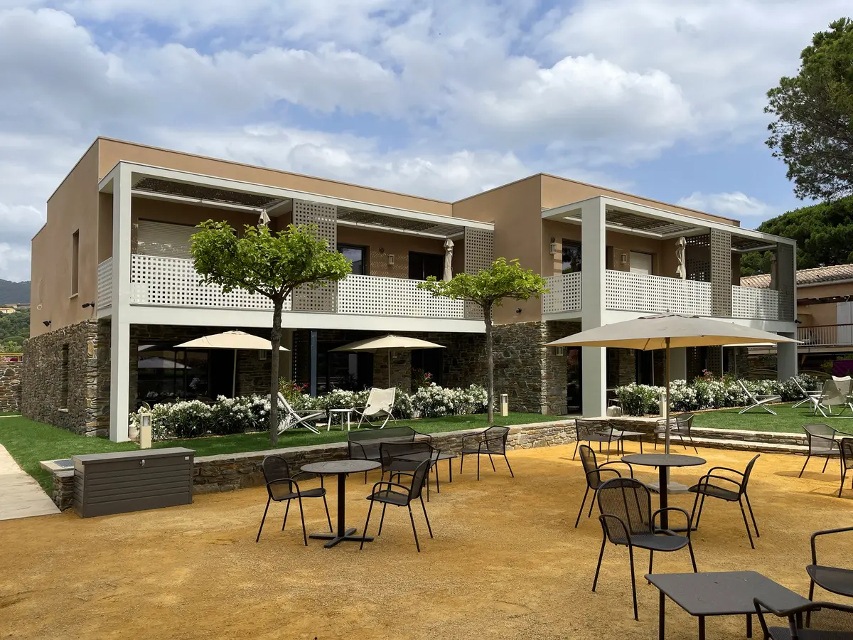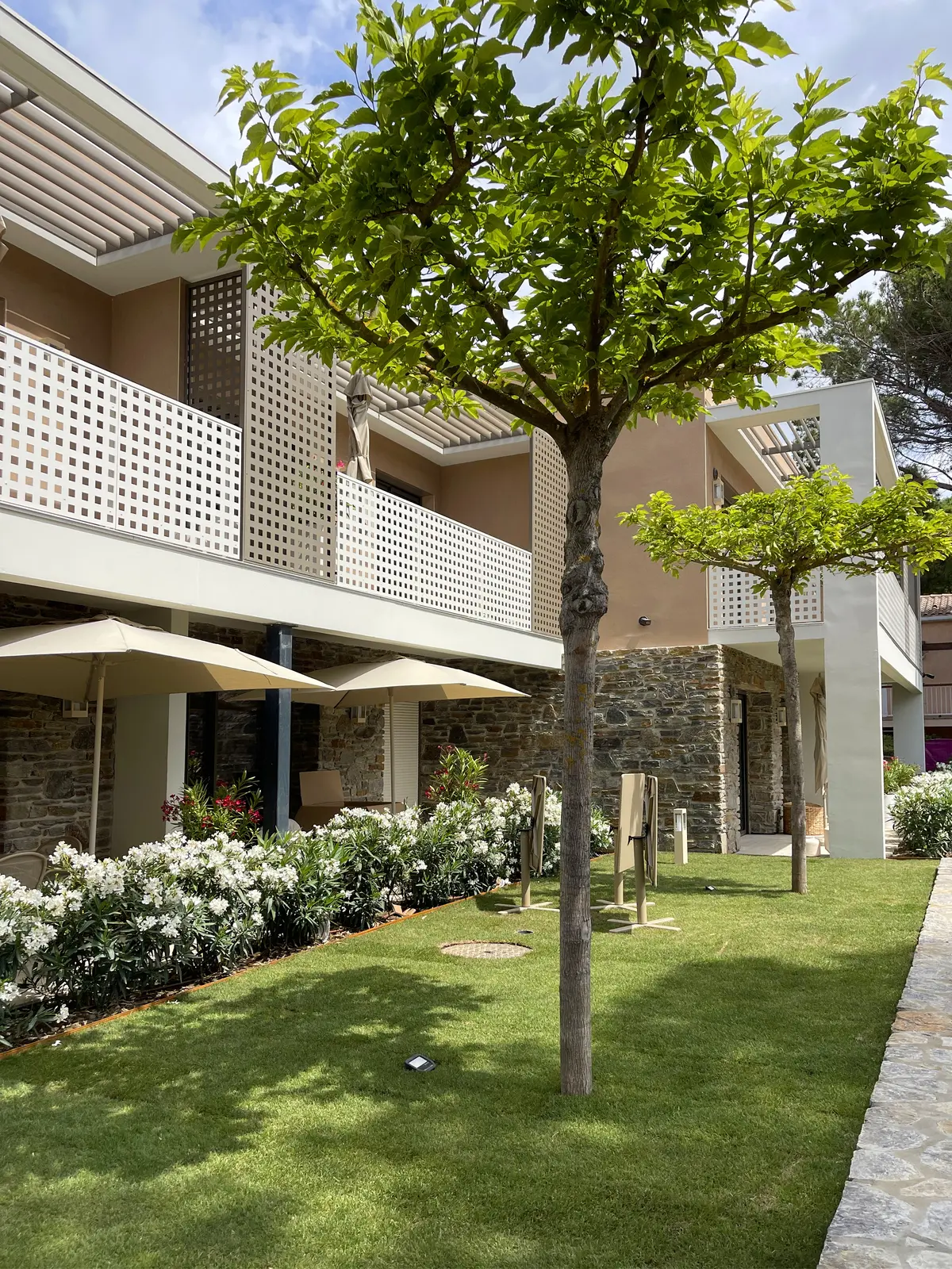 Directement installée en front de mer, cette résidence hôtelière propose de compléter son offre par la construction d’appartements hôtels. Placé dans un écrin paysager dense méditerranéen, ce nouveau bâtiment a dû proposer une insertion qualitative et largement végétalisée. Ainsi, il encadre un espace dédié à la piscine et aux diverses terrasses. Chaque logement est mono-orienté vers la mer et possède un large espace extérieur. Les matériaux qualitatifs et sobres sont utilisés tant pour l’architecture que pour les espaces extérieurs permettant de densifier sans pour autant impacter l’écrin végétal.
