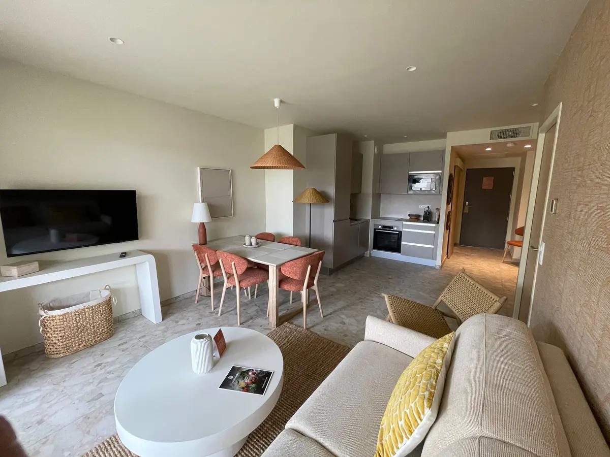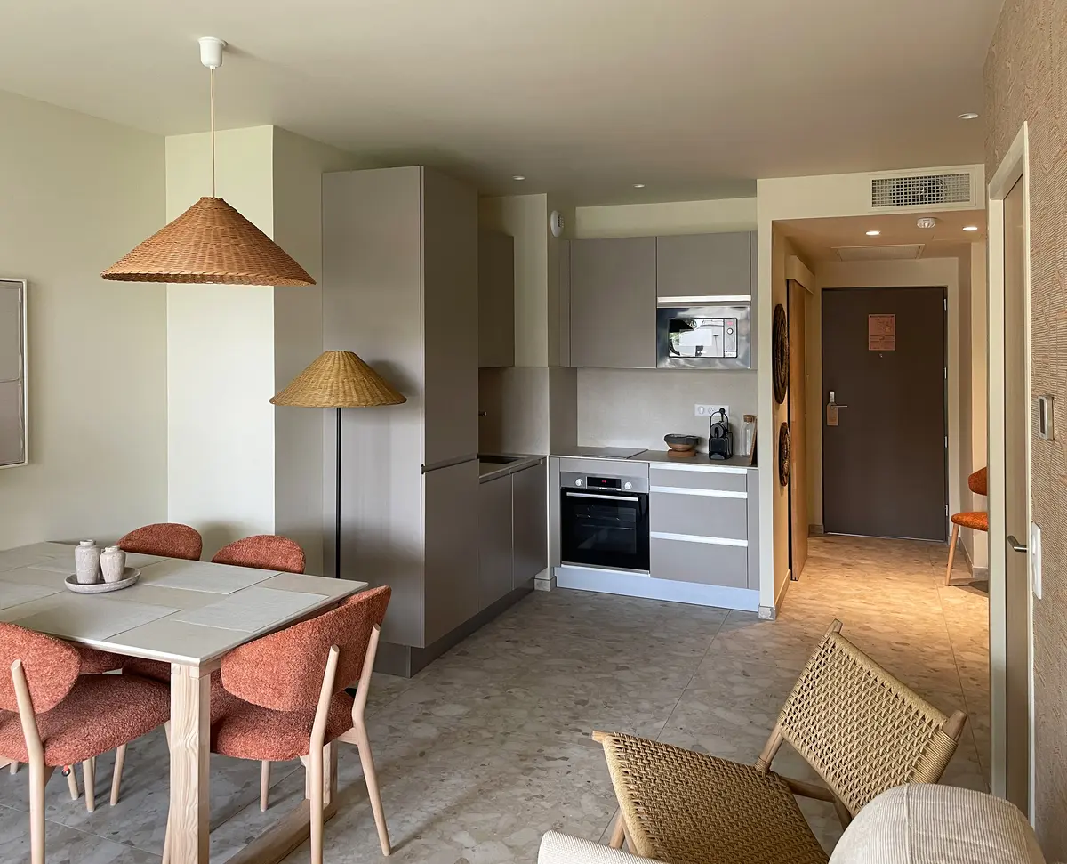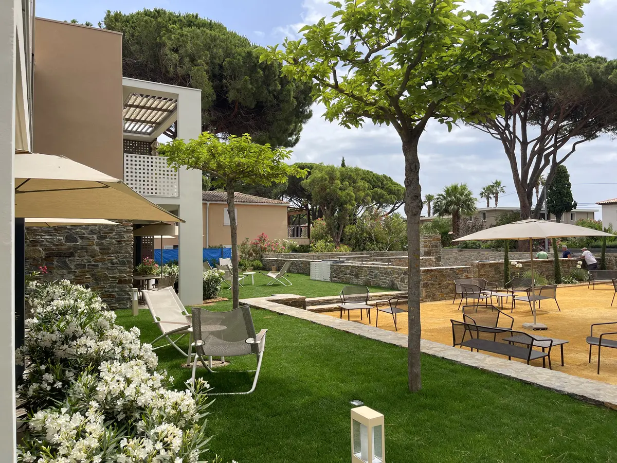 Directement installée en front de mer, cette résidence hôtelière propose de compléter son offre par la construction d’appartements hôtels. Placé dans un écrin paysager dense méditerranéen, ce nouveau bâtiment a dû proposer une insertion qualitative et largement végétalisée. Ainsi, il encadre un espace dédié à la piscine et aux diverses terrasses. Chaque logement est mono-orienté vers la mer et possède un large espace extérieur. Les matériaux qualitatifs et sobres sont utilisés tant pour l’architecture que pour les espaces extérieurs permettant de densifier sans pour autant impacter l’écrin végétal.